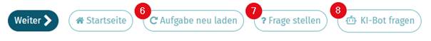 • Alternativ kann bei aktiviertem KI-Bot mit KI-BOT FRAGEN (8) der KI-Bot Fragen zur Aufgabe direkt beantworten. Siehe dazu auch: Wie verwende ich den KI-Bot?
